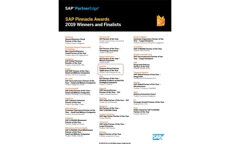 弊社はSAP社主催のSAP Pinnacle Awards 2019を受賞いたしましたのでお知らせします。
